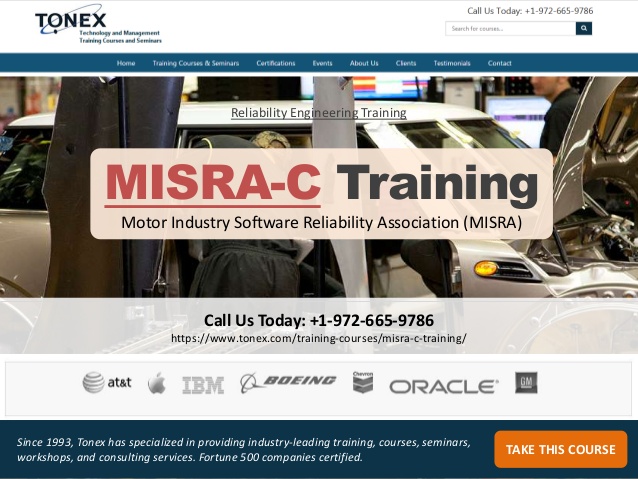 MISRA stands for "Motor Industry Software Reliability Association". MISRA-C Training is designed for C programmers, engineers and managers working on safety-critical applications for automotive, medical, military, aerospace, avionics, or other life-critical applications.